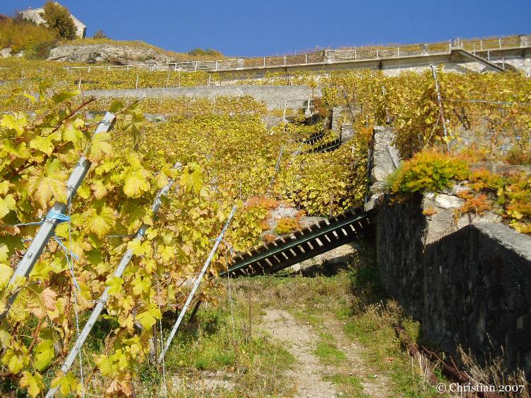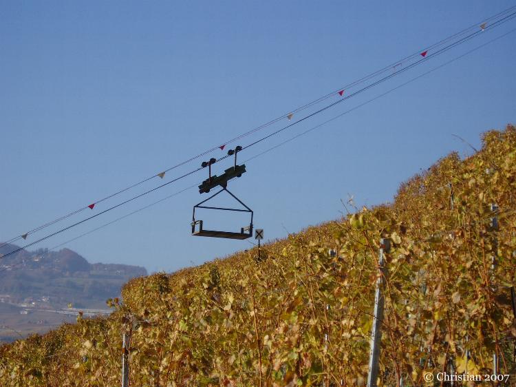 Vigne du Lavaux en novembre avec le monte-charge pour le travail de la vigne