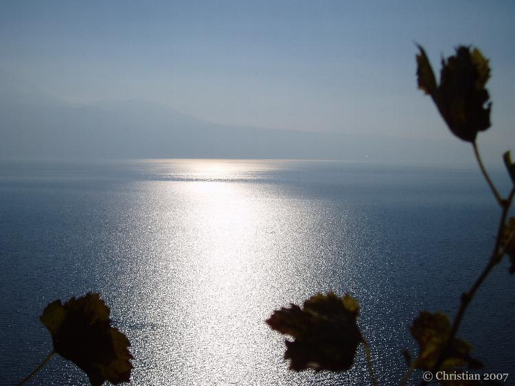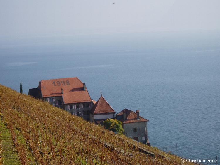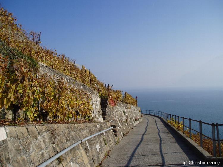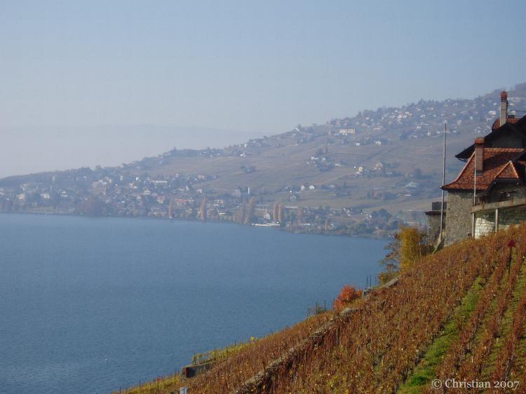Vigne du Lavaux en novembre avec vue sur le lac Léman